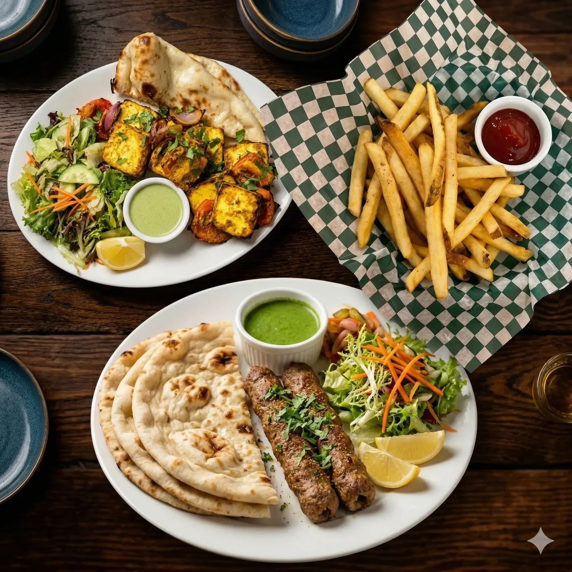 and grilled specialties, plus North Indian items like Bollywood Butter